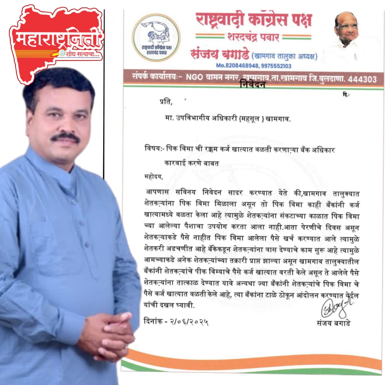पिकविमा रक्कम कर्ज खात्यात वळती करणाऱ्या बँकांना राष्ट्रवादीचा टाळेठोको आंदोलनाचा इशारा June 24, 2025